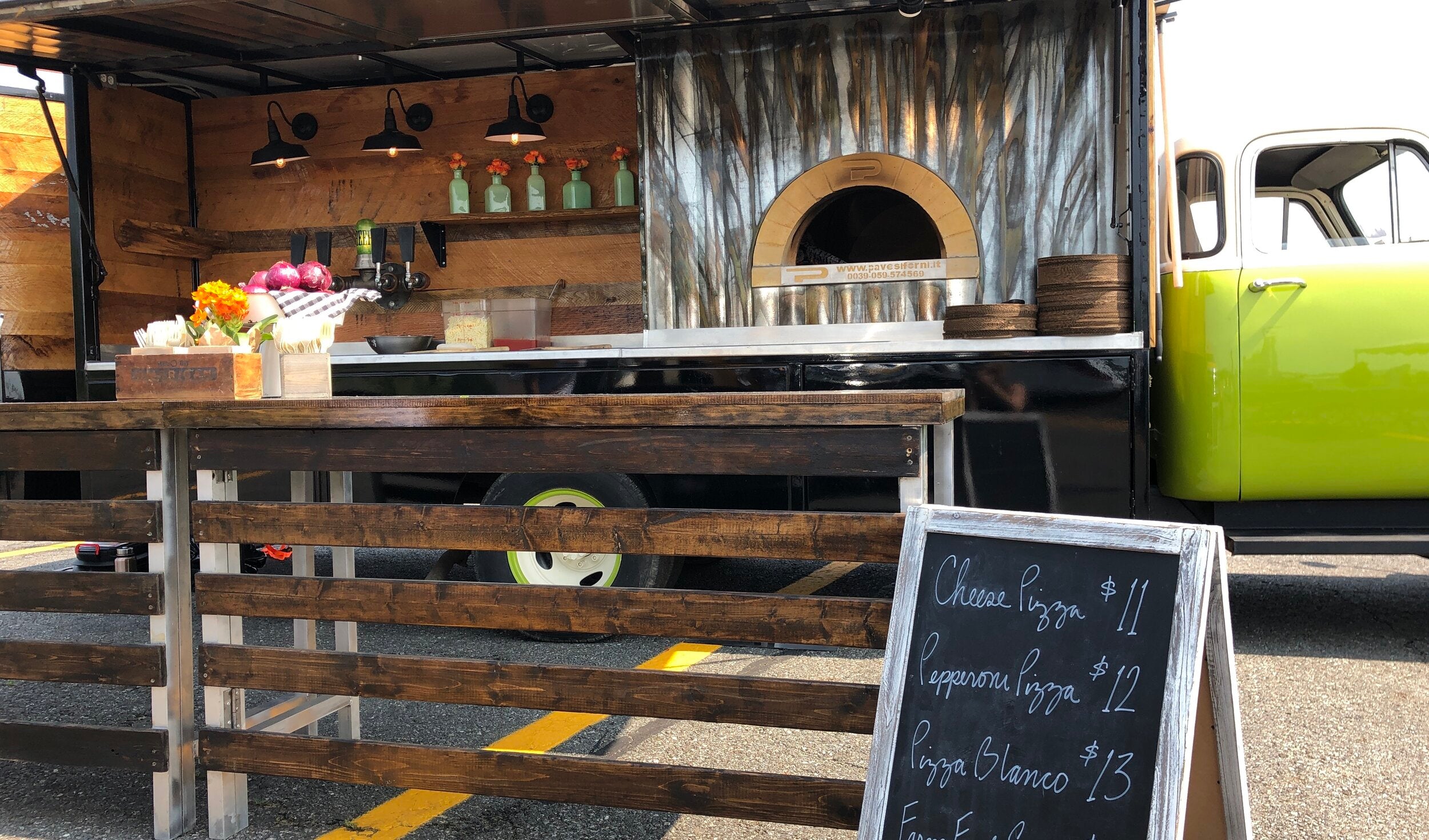 Village Social is excited to roll out our new on-the go ultimate party truck, offering our much-loved pizzas to the Westchester communities we hold so near and dear. Specializing in wood-fired pizzas, fresh salads, and seasonal appetizers, all made with top-of-the-line ingredients. This experience is brought to you in our custom built 1954 Chevy truck, “Francesca”, that has been outfitted with everything we need to make your event memorable and stress-free, including our beloved Forza Forni wood-fired oven and four taps pouring the finest craft beers & international wines.